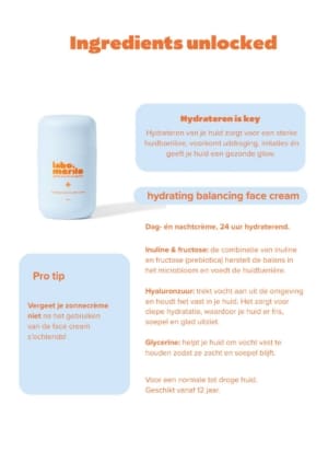 Hydrating balancing face cream: Na het serum, breng een kleine hoeveelheid aan op je handen en masseer zacht in op je gezicht.